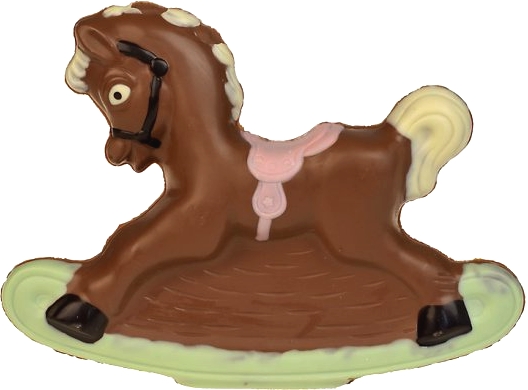 Figurka Kůň houpací velký z belgické čokolády. Váha cca 450 gramů.
