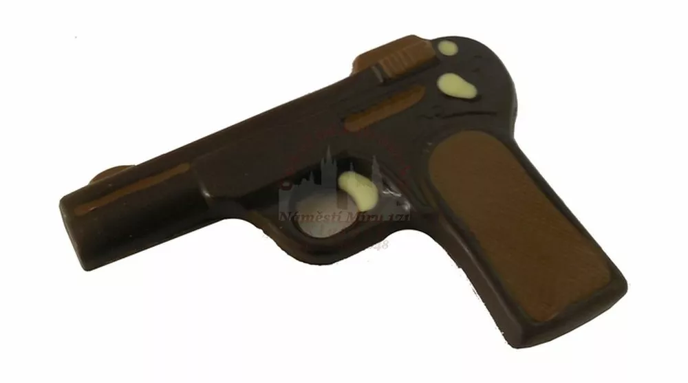 Figurka z mléčné belgické čokolády (zdobená bílou a hořkou). Váha cca 100 gramů. Délka 15 cm.