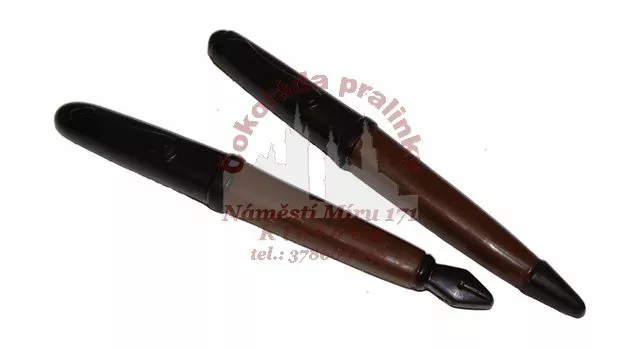 Tvarovaná mléčná belgická čokoláda (zdobená hořkou). Váha cca 20 gramů. Délka 15 cm.Nelze vybrat variantu.