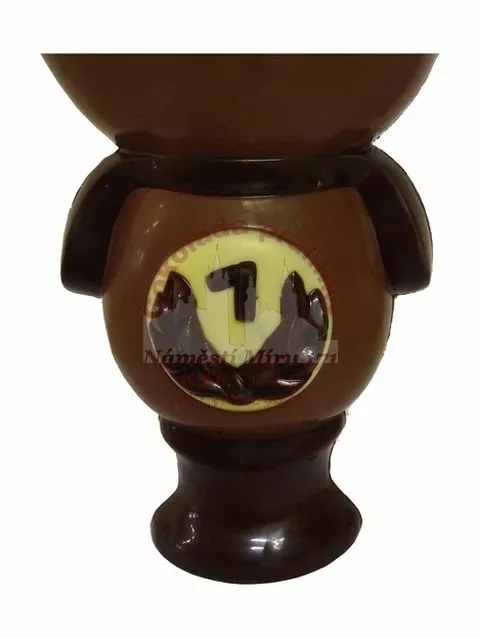Figurka z mléčné belgické čokolády (zdobená bílou a hořkou čokoládou). Váha cca 340 gramů. Výška 18 cm.