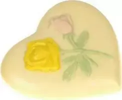 Čokoláda ve tvaru srdce s růžičkou z bílé belgické čokolády (zdobená mléčnou a hořkou). Váha cca 75 gramů.
