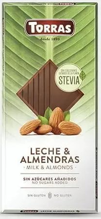 - Torras mléčná čokoláda slazená stévií s mandlemi