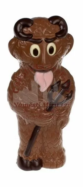 Figurka z hořké belgické čokolády (zdobená bílou a mléčnou) . Váha cca 190 gramů. Výška 24 cm.