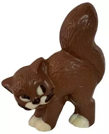 Figurka z mléčné belgické čokolády (zdobená bílou a hořkou). Váha cca 70 gramů. Výška 12 cm.